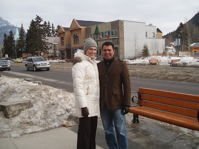 In the car on the way to Banff, Javier surprised me with the idea of snowboarding lessons (I'd been prepared for skiing lessons). We both decided it would be a good idea, since most of our friends snowboard. The drive to Banff was beautiful--I miss seeing the mountains so much sometimes! I would love to live in the Rockies, but property there is getting incredibly expensive. The average home in Canmore, a small town a few minutes from Banff that has traditionally had lower housing prices, is now $850,000! Living a rustic lifestyle is not as affordable as it sounds, unfortunately.